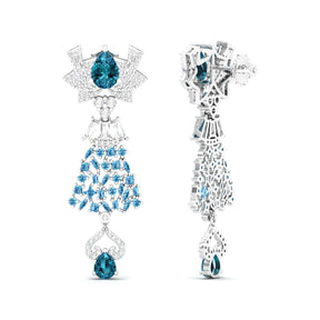Maurya London Blue Topaz Hoist Drop Earrings with Diamonds